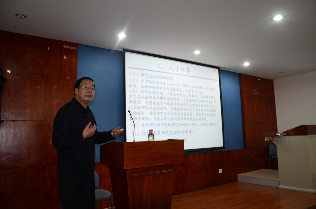报告会上,丛书林教授以个人近40年的教师工作经历同与会教师分享教书育人等相关问题。丛老师从教师的职业意义和职责作为开场,倡导教师不仅要教给学生知识,更要帮助学生明确奋斗目标、引导学生养成良好学习习惯、培养学生掌握有效的思维和思想方法、学习方法和工作方法。在谈到教学工作时,丛老师总结了教学工作的常规要求和教学工作的评判标准,并以主讲的《激光与物质相互作用》为例,认为教学不只是把内容正确、有条理的讲授出来,还要结合讲课内容向学生讲解物理思想和方法以及知识的应用(或潜在的应用)。引导学生领悟并掌握讲课内容的基本理论(或实验原理)、基本思想和基本方法,让学生了解或学会如何应用所学知识解决实际问题。同时,丛老师建议青年教师用“板书”或者“板书+多媒体课件”方式授课,并强调教案编写工作的重要意义。关于教学与科研工作的关系,从老师认为两者相互促进,共同提高,教学促进科研,科研支撑教学,科研水平高的教师往往教学水平也高。对于本科生培养,丛老师认为要坚持正面教育和正确引导,教师不应向学生宣传不正确、不健康的东西,要坚持原则,遵守规章制度,尊重学生,不要接收本科生及其家长礼品,不要欠学生的人情。对于研究生培养,丛书林老师以“研究生导师不是一种荣誉,而是一种责任”为切入点,倡导教师指导研究生,要有责任心,把研究生看作人才加以培养,不要把研究生当成发表文章机器或者科研工具来使用。丛老师分析了硕士和博士研究生群体的不同培养目标,并向与会教师分享了研究生科研技能训练经验。丛老师以自己指导的2014年4个博士毕业生和1个硕士毕业生当前发展未来为例,倡导教师要指导研究生确定奋斗目标,帮助研究生为其创造一个足够大的发展空间。最后,丛书林老师从父母的职责和义务、应该要注意的问题两方面,和与会教师分享家庭子女教育与培养等问题。丛老师以“教师是人类灵魂的工程师,教书育人是教师的神圣职责”为结语,青年教师是学校、学院发展的未来,希望青年教师未来有更大的发展空间和平台。