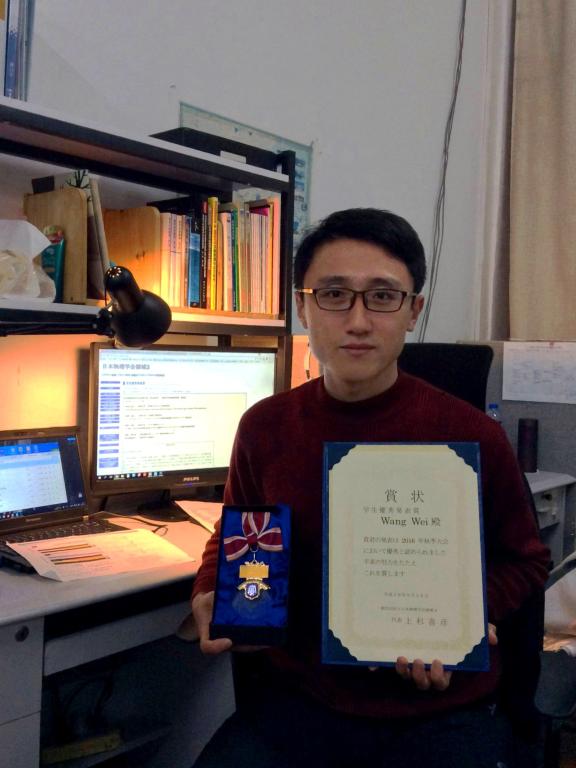 近日,在日本物理学会(JPS)2016年秋季大会中,我校开云在线登陆入口-开云(中国)等离子体专业博士生王玮获得了本年度日本物理学会优秀发表赏(奖)。日本物理学会创建于1877年,130年间共涌现出11位诺贝尔物理学奖获得者。优秀发表赏(奖)项旨在表彰于物理学各个领域取得突出进展的在读博士研究生,每个领域最终仅遴选出4人。本届大会共有超过5000名参加者,会议报告及展板总计3600余件。评奖过程首先由会议期间通过不记名投票对1000余场报告进行初选,并最终送于会议组委会通过讨论产生。王玮同学还被邀请参加了获奖后由日本物理学会主办的恳谈会(宴会活动)。本次王玮获奖是该奖项在近三年内唯一一次由中国人获得。