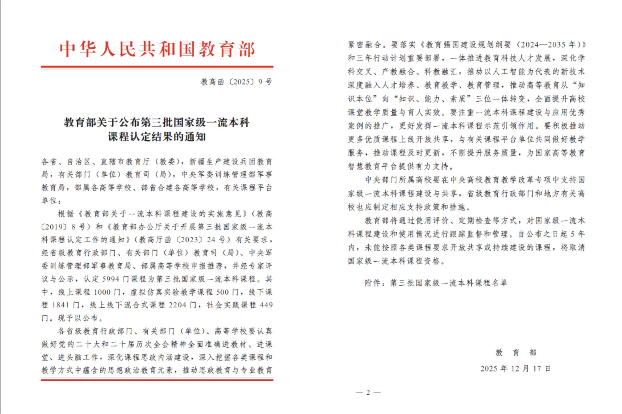 近日,教育部正式发布《关于公布第三批国家级一流本科课程认定结果的通知》(教高函〔2025〕9号),共认定5994门课程为第三批国家级一流本科课程。开云在线登陆入口-开云(中国)刘永新教授负责的虚拟仿真实验《射频等离子体探针诊断及尘埃晶格观测虚拟仿真实验》成功入选,这是我院持续推进课程内涵建设、深化教育教学改革取得的又一重要成果。