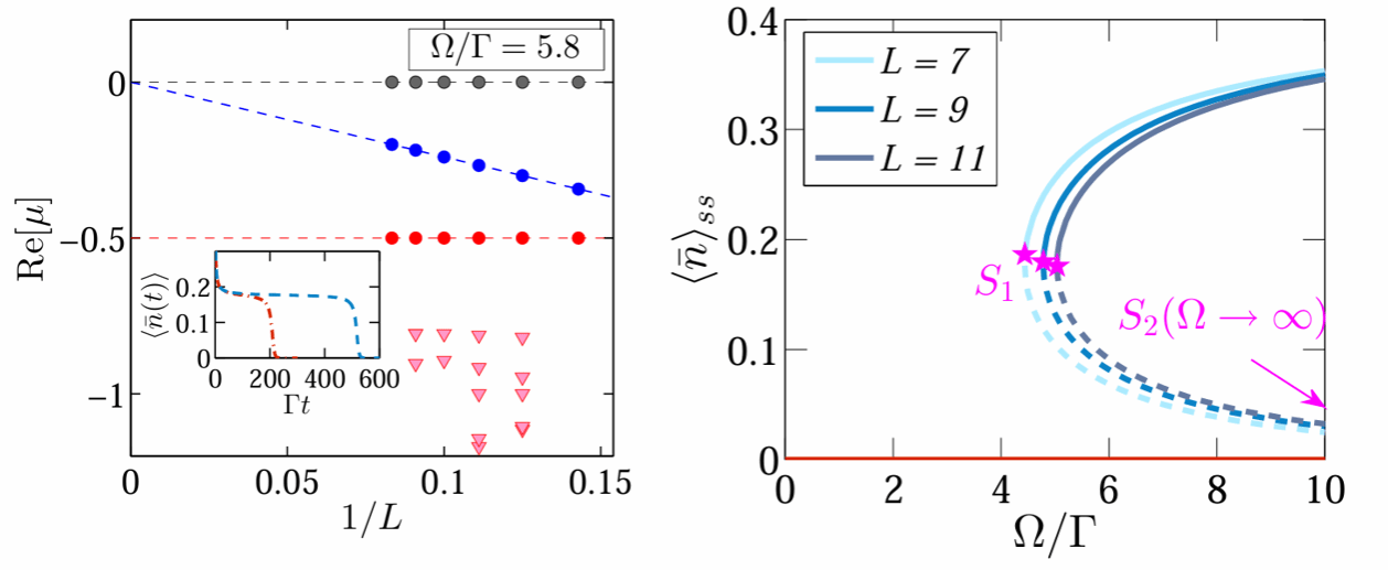 非平衡相变是量子物理、凝聚态与统计物理领域的重要研究方向,接触过程是非平衡稳态相变中的一个典型模型,其在模拟流行病动力学、信息扩散等过程中发挥重要作用。然而,将该模型扩展至量子系统时,由于量子相干演化与耗散之间的相互竞争,导致系统稳态呈现许多新奇特性。量子接触过程的一个显著特征是在一维体系中可表现出从吸收相到活跃相的稳态相变。但是此类相变属于连续相变还是非连续相变仍存在较大争议,是该方向的研究焦点。而且该问题涉及非幺正演化和复杂多体作用,具有较大的挑战性。