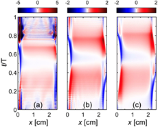 该工作采用课题组自主开发的面向等离子体工艺腔室的多物理场仿真平台MAPS程序中的粒子模拟程序和等效回路模型,对磁化容性耦合等离子体的动理学行为进行了模拟。研究发现,通过施加与平行板电极呈一定偏角的匀强磁场,可以在等离子体内部引发电子的反对称运动,造成系统的非对称放电。非对称容性放电回路系统中的自激-串联共振与电子回旋运动耦合,形成新的混杂共振模式,即 “磁化串联共振”。该混杂共振频率存在高、低两个频率分支,通过外部施加低频分支的射频激励,能够在等离子体内部激发产生高频分支共振频率的电流振荡,从而显著增强谐波电子加热并大幅提高等离子体密度。
