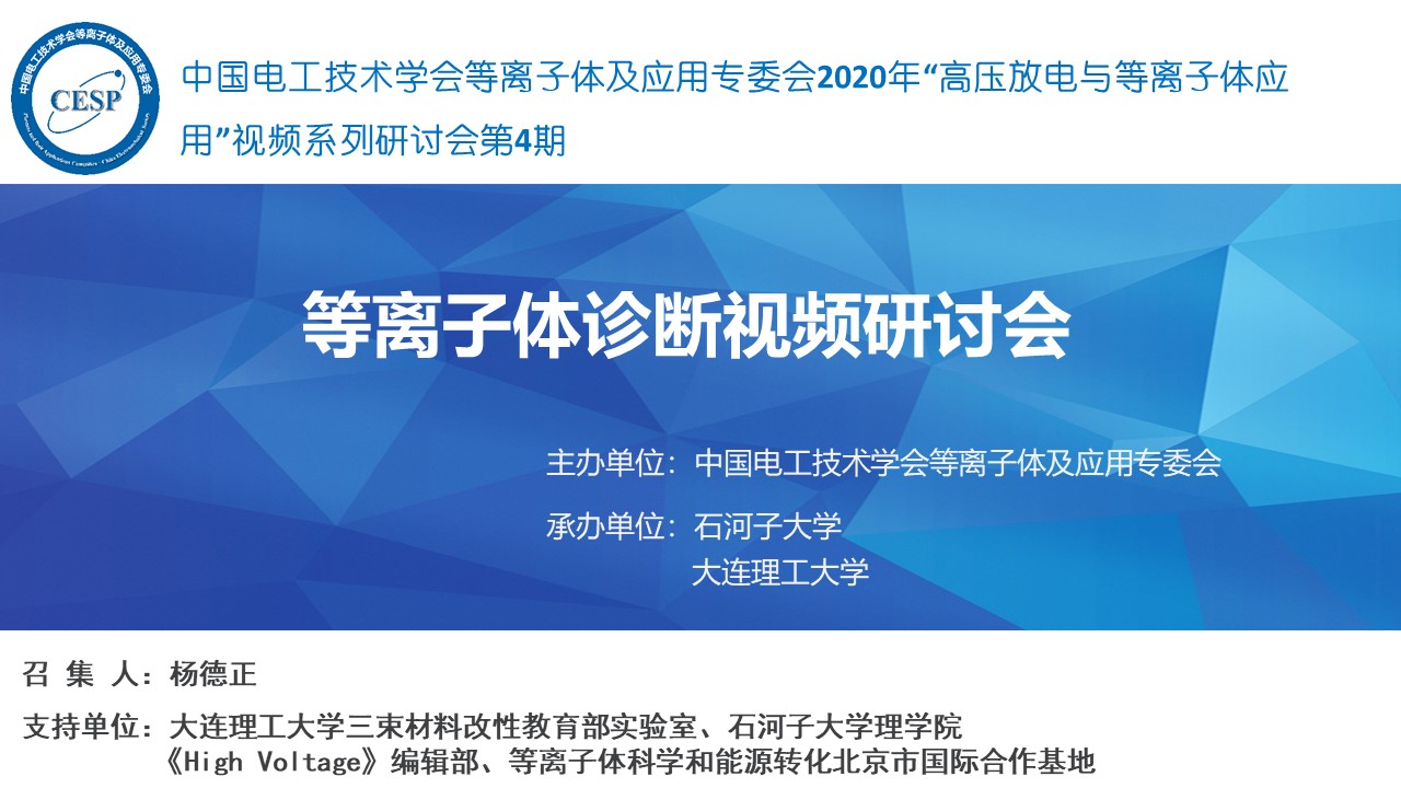 中国电工技术学会等离子体及应用专委会“高压放电与等离子体应用”视频系列研讨会第4期——“等离子体诊断”专题成功召开