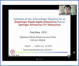8月17日上午,应开云在线登陆入口-开云(中国)原子与分子物理学科王高仁副教授邀请,中国人民大学物理系张芃教授为学院师生做了题为“Solutions of the Schr?dinger Equation for an Anisotropic Dipole-Dipole Interaction Plus an Isotropic Attractive 1/r6 Interaction”的学术报告。赵纪军院长、于长水副院长、韩永昌副院长、丛书林教授、周思研究员、程传辉和郭宇副教授等60多位教师与研究生在线参加了学术报告会。