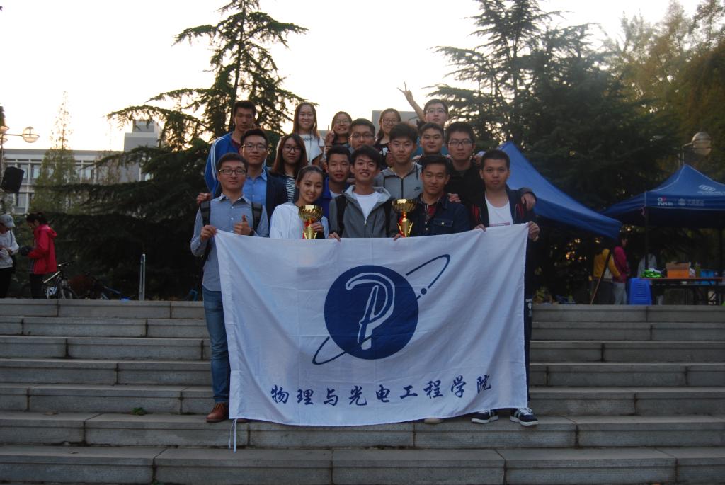 2016年10月15、16日,我校2016年研究生运动会在中心体育场举行。物理与光电工程学院取得B组团体总成绩第一名和男子组第一名的佳绩,并取得包括男子4×100米接力、推瓶扶瓶、跳绳、拔河和海底传月等多个单项的冠亚军。