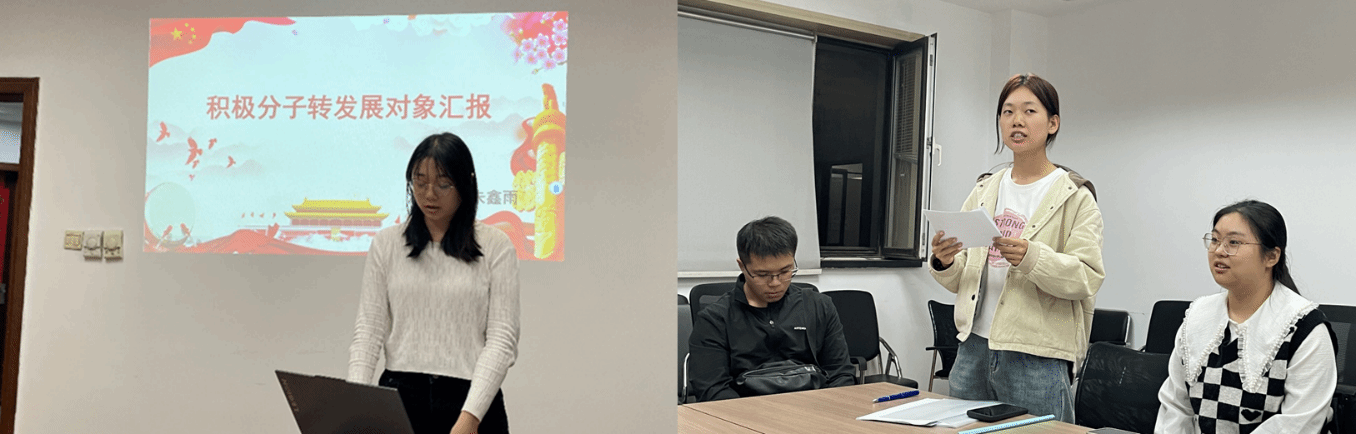 大会第一项,迎接新生党员。首先,由李希娜同志向大家介绍支部的基本情况及近年来支部在党员队伍建设、提升组织生活质量等方面的工作。接下来,新生党员依次进行了自我介绍,全体党员对2024级新生党员的加入表示热烈欢迎。