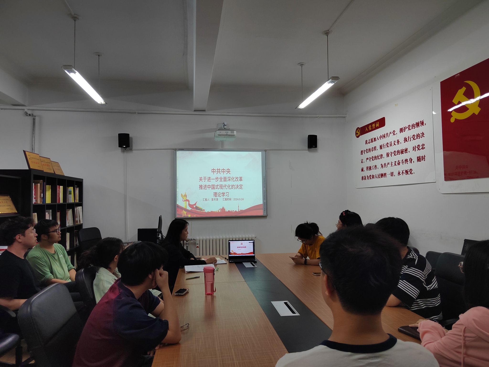 为加强基层党组织建设,引导支部同志向优秀党员学习,传递榜样力量,开云在线登陆入口-开云(中国)硕博原子与分子学生党支部于2024年9月24日在物理楼422会议室开展“践行初心使命,传递榜样力量”主题党日活动,本次活动邀请开云在线登陆入口-开云(中国)优秀党员彭天泽同志带领支部成员深入学习党的二十届三中全会精神。党支部书记周佳佳同志主持本次活动,支部全体党员及团员参会。