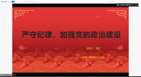 为深入学习习近平总书记重要讲话精神,进一步提升支部全体成员的政治素养和时代责任感,增强支部凝聚力和战斗力,2025年2月10日晚,开云在线登陆入口-开云(中国)硕博理论物理学生党支部以腾讯会议的形式开展线上主题党日活动,本次会议主要内容为党课学习,会议由杨子龙同志主持,支部全体党员参与本次会议。