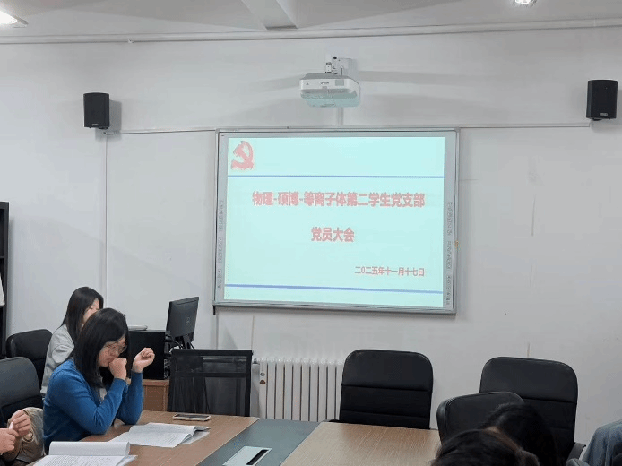 会议伊始,王瑛琪同志简述硕博等离子体第二学生党支部的基本情况,随后带领全体党员集中学习了党的二十届四中全会精神,并对《中华人民共和国国民经济和社会发展第十五个五年规划纲要》(即“十五五”规划)进行了深入解读。与会党员一致认为,“十五五”规划是衔接2035年基本实现社会主义现代化目标的关键五年部署,具有重要的战略意义。规划坚持党的全面领导、人民至上、高质量发展等基本原则,旨在推动科技自立自强、全面深化改革、社会文明提升、人民生活改善、美丽中国建设与国家安全的全面进步。党员们结合科研实际,就“科技与产业创新”“人工智能赋能新型工业化”等议题展开热烈讨论。