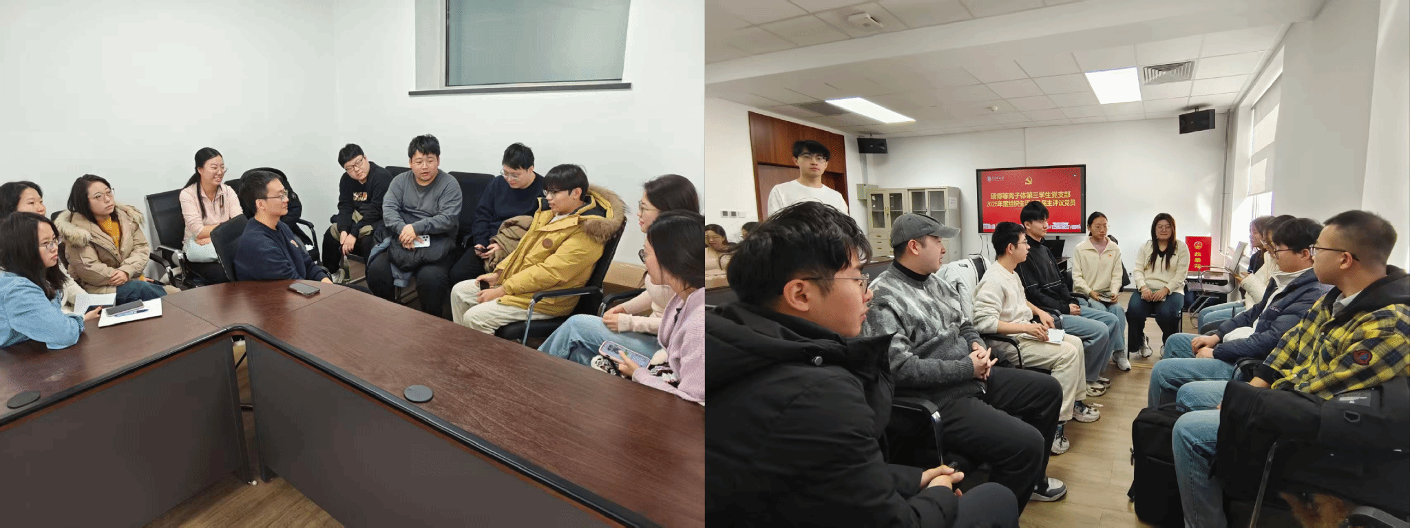 会议第二项,开展2025年度组织生活会。参会党员分为两个小组,认真总结2025年度的思想、学习、科研和生活表现,开展批评与自我批评。大家坚持实事求是的原则,围绕党性修养、学业科研、作用发挥等方面坦诚交流,既指出自身与他人的不足,也总结经验、明确改进方向,进一步清晰了2026年的努力目标。批评与自我批评完成后,全体党员进行了2025年度民主评议。