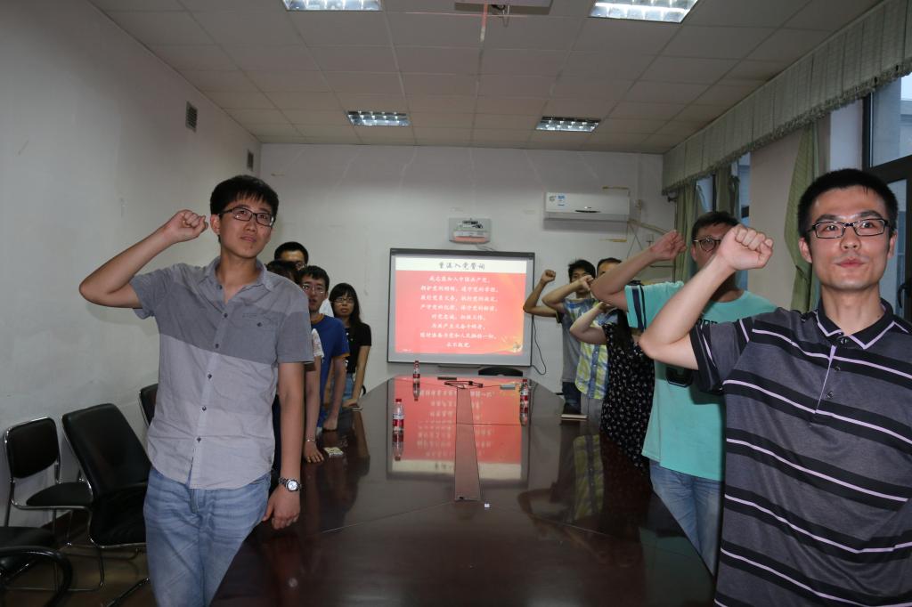 专题学习结束后,进行了支部大会第二项:庆祝建党95周年活动。会议上大家齐唱国歌。预备党员李成伟和李泉江两位同志做了发言,回顾了建党历程, 指出我们国家在党的领导下稳步发展,不断进步,虽然一路风雨飘摇,但共产党员先辈们不怕困难,勇往直前,才有了今天的辉煌。在支部书记王鹏的组织下,大家重温入党誓词,不忘当初入党的初心,坚定身为党员的信念不动摇。