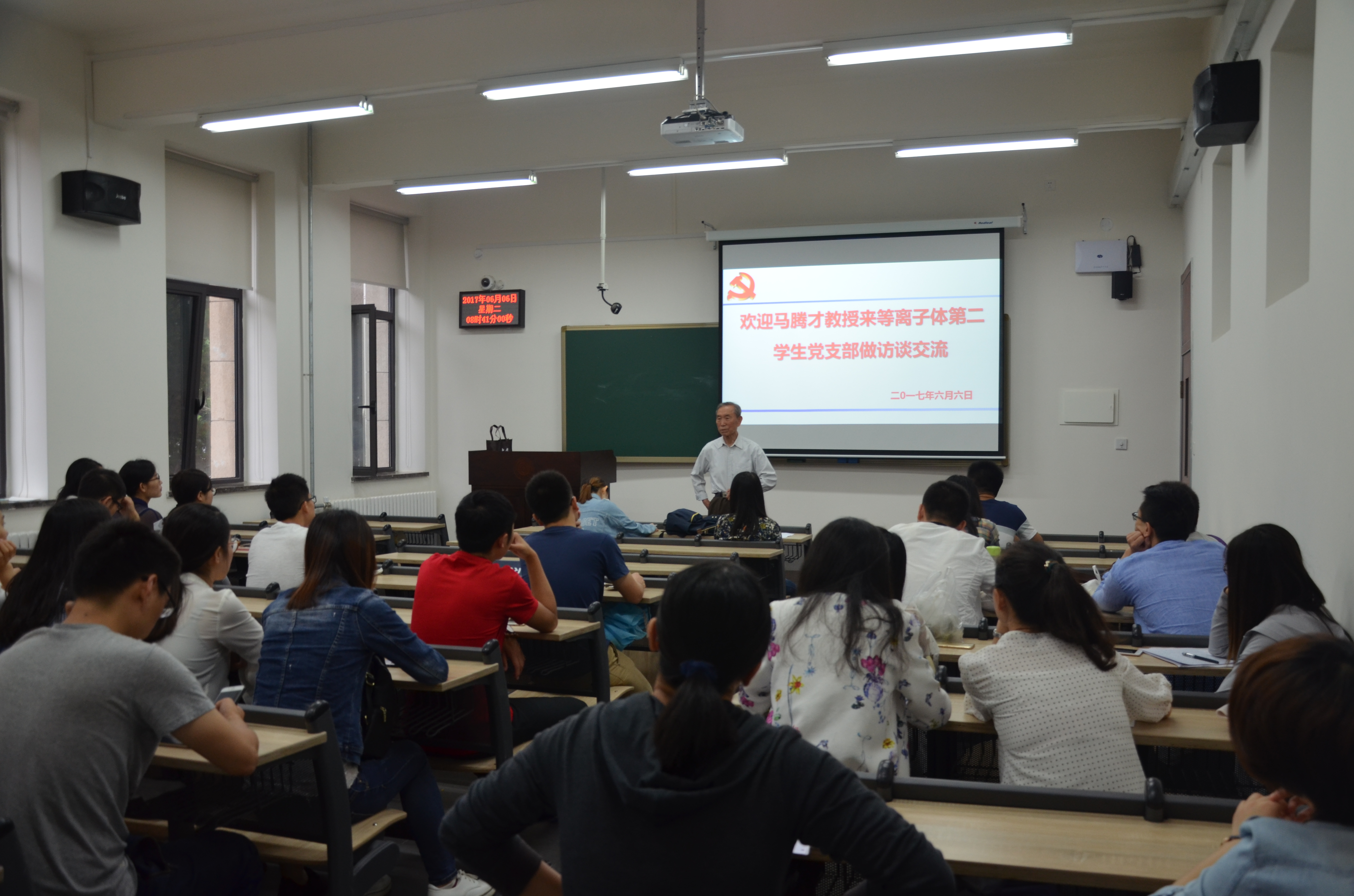为进一步落实学校工作要求,深入发挥红色基因在学校“双一流”建设中的重要作用,物理硕博等离子体第二学生党支部根据活动计划,于6月6日在一馆1-108教室,开展“红色筑梦人—优秀教师面对面”为主题的传承红色基因教育活动。参加此次活动的有开云在线登陆入口-开云(中国)老教授马腾才老师,物理硕博等离子体第二学生党支部的党员、积极分子,以及群众。