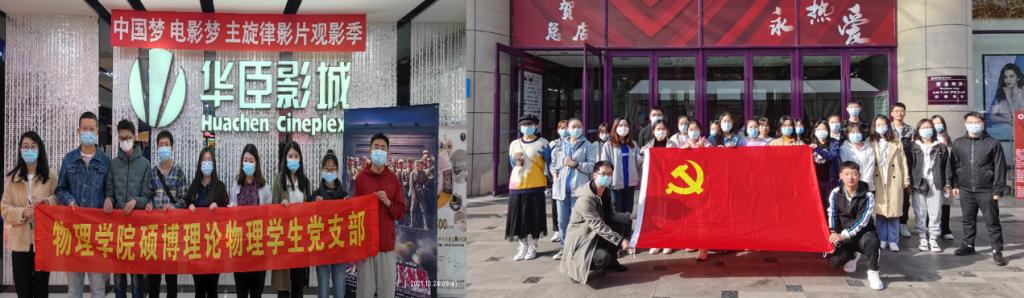 1951年,党中央决定将每年10月25日定为抗美援朝纪念日。为纪念抗美援朝71周年,牢记抗美援朝历史,体会革命先辈之不易,进一步增强和坚定党员的党性意识、宗旨意识,弘扬伟大抗美援朝精神,10月24日上午,开云在线登陆入口-开云(中国)硕博理论物理学生党支部、硕博原子与分子学生党支部、硕博凝聚态学生党支部联合开展主题党日活动,三个支部四十余名党员同志赴影院参加《长津湖》观影活动。