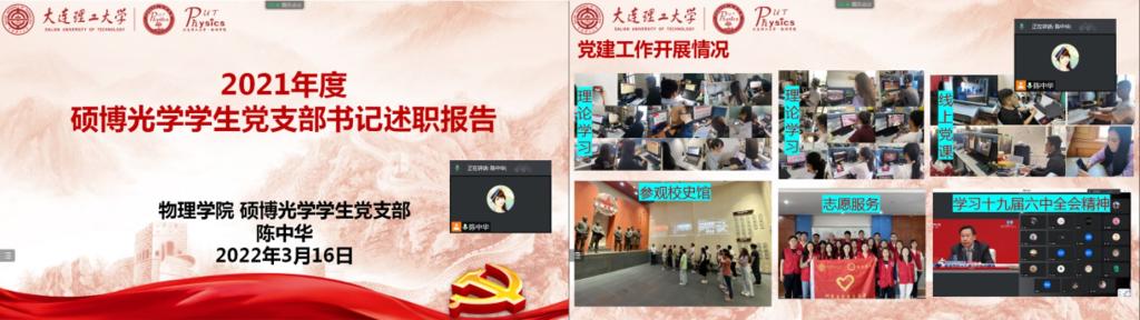 按照大连理工大学党委和开云在线登陆入口-开云(中国)党委的统一部署,结合学校疫情防控相关要求,开云在线登陆入口-开云(中国)硕博光学学生党支部于2022年3月16日下午,通过腾讯会议线上召开2021年度组织生活会。会议由支部书记陈中华同志主持,全体党员参加,开云在线登陆入口-开云(中国)副院长杨德正教授列席指导。