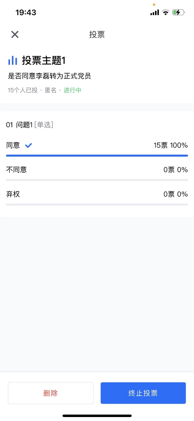 大会第一项为讨论预备党员李磊同志与韩钰芬同志的转正事宜。首先由李磊同志宣读转正申请书,汇报本人预备期内的表现情况,在过去一年里不断加强理论学习,提高自己的党性修养,并努力将学习的理论知识应用于实践。随后,分别由两位培养人辛漩漩同志和乔玲同志对李磊同志在预备期内的各方面表现情况进行点评,李磊同志在思想上积极要求进步,能够以一名共产党员的标准要求自己,为人正直,有较强的纪律性,团结同学,能够热心帮助他人。与会党员针对以上汇报充分讨论发表意见。接着,采取无记名投票的方式进行投票,经计票与检票,大会全票通过了李磊同志的转正申请。