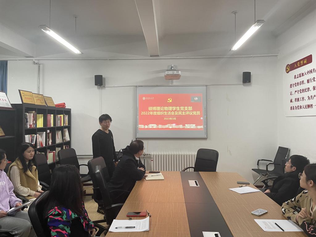 根据学校党委《关于召开2022年度基层党组织组织生活会和开展民主评议党员的通知》和学院党委的部署安排,支委会为更好开展组织生活会和民主评议党员相关工作进行精心准备,会前,支部围绕《学习党的二十大精神,正确理解中国式现代化》的主题党课教育,为开展好组织生活打下思想基础。硕博理论物理学生党支部2022年度组织生活会和民主评议党员于2023年3月2日晚7点在422会议室采取线上与线下相结合的方式进行开展。本次会议的主要内容有两部分,党课集中学习与组织生活会和民主评议党员。其中,集中学习围绕深入贯彻党的二十大精神和毛泽东同志“向雷锋同志学习”题词发表六十周年来开展。本次会议由支部书记刘玉强同志主持,开云在线登陆入口-开云(中国)副院长于长水同志出席会议,支部全体党员参加。