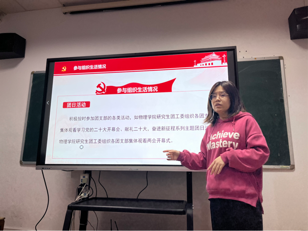 支部成立之初,需要把好发展党员的质量“入口关”。在会上,积极分子以及入党申请人通过PPT展示,就思想、生活、学习、工作等方面做出了详细汇报,主要讲述了各自的入党动机、对党的认识、现存问题及改进措施以及参加党团活动情况。其培养人同志和团支书刘鹏辉同志分别介绍了积极分子和入党申请人的主要情况。在与会人员进行充分讨论之后,按照逐个讨论、逐个表决的原则,逐一进行讨论、表决,一致同意任彦利同志转为发展对象,武宏和吕征同志确立为入党积极分子。