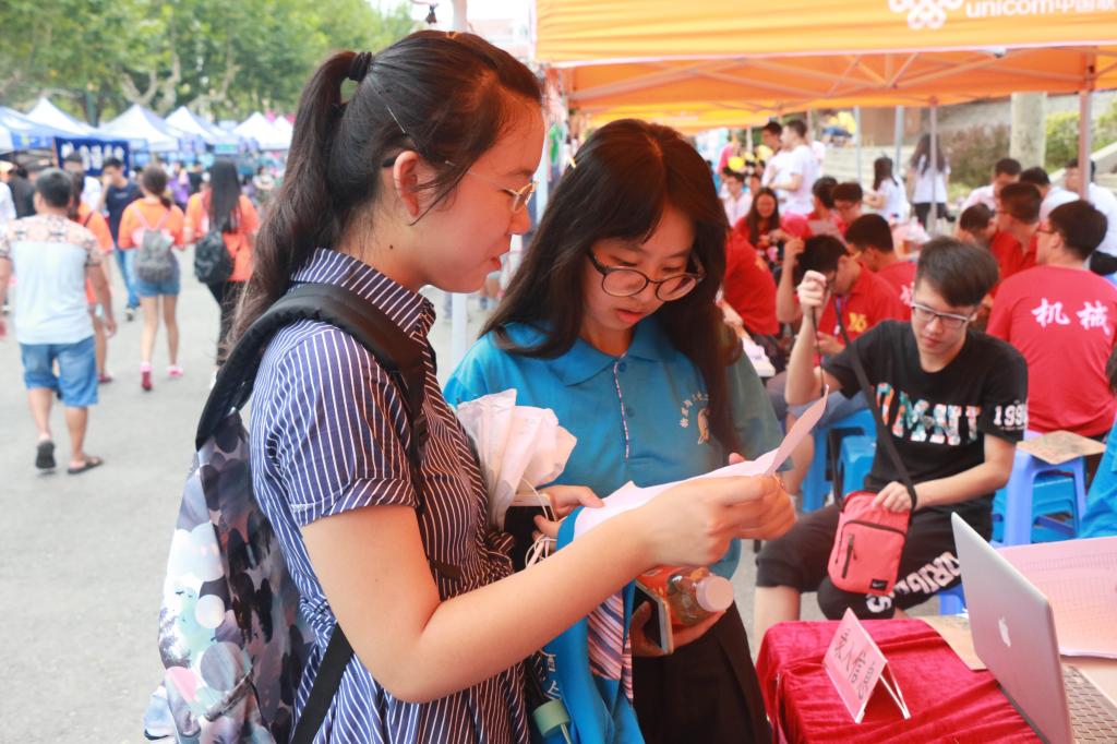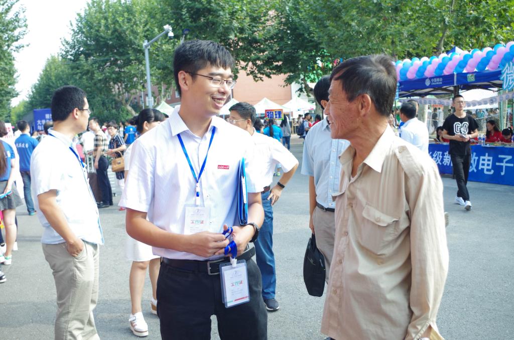 学生志愿者们秉持着奉献自己的原则,从布置场地到接校车,从新生注册到为新生运行李,热心接待着每一位同学,彰显了物理与光电工程学院的优良品质。