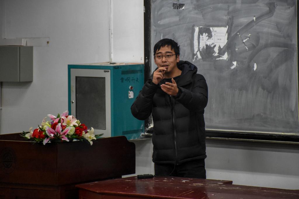 团校培训开始,首先奏唱团歌。现场歌声嘹亮,气势昂扬。而后佟西原老师上台为同学们讲述他对团学工作的理解和对大家的期望。首先,他抛出三个问题引出物理团学社的发展历程,并通过自己大学本科期间开展汶川地震募捐等活动和留校当辅导员的经历说明团学工作对自己的深远影响。接下来,佟老师讲述了物理团学最宝贵的三个特色,即较为完善的组织机构,以健美操精神为基础的文体活动传统精神及以家文化为核心的团队氛围。佟老师详尽的介绍使同学们对团学社的认识更加全面。