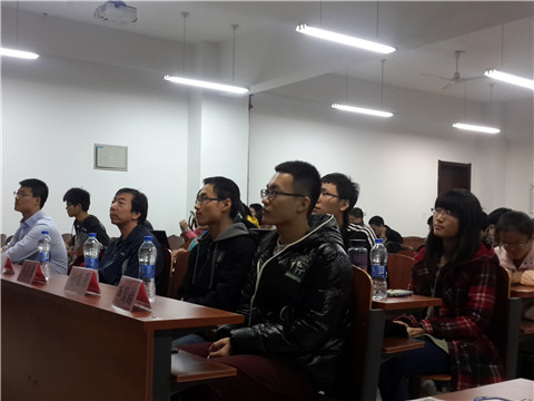 随后,去年获得国家二等奖的参赛队伍进行了比赛经验的介绍和比赛流程的模拟。首先由队员梁敬淯介绍了她们的队伍,分享了一些他们的比赛经历和比赛经验。随后,另外四名队员进行了决赛的比赛流程演示。比赛形式三支队伍一组,两支队伍进行正反方辩论,另外一组作为评论方点评,流程依次为:正方PPT展示反方提出的题目;反方向正方提问,正方回答;反方作报告,正反方辩论;评论方提问,正反方回答;评论方报告;正方总结发言。队员们各司其职,正方条理清晰的展示,正反方剑拔弩张的辩论,评论方细致风趣的点评,生动形象地为同学们再现了决赛的情景。之后,滕永杰老师对几名队员辩论时的表现进行了点评,让同学们对比赛的形式有了十分细致的了解。