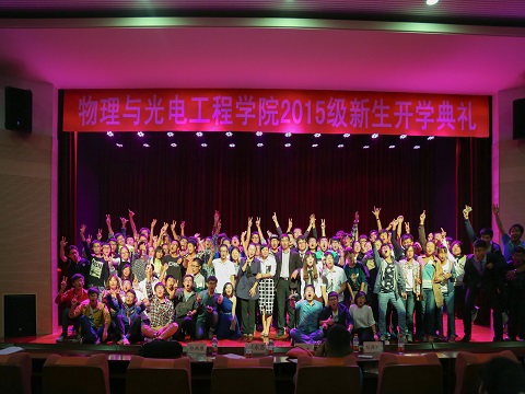 九月二十八号晚,物理与光电工程学院2015级迎新晚会于西综B301隆重举行,本次晚会由院学生会文化部主办,出席本次活动的有院党委副书记兼副院长杨木老师,团委书记兼12级辅导员佟西原老师,13级辅导员兼自强社指导老师俞洲老师,14级辅导员梁勇老师,15级辅导员纪丹红老师以及各班代班长。