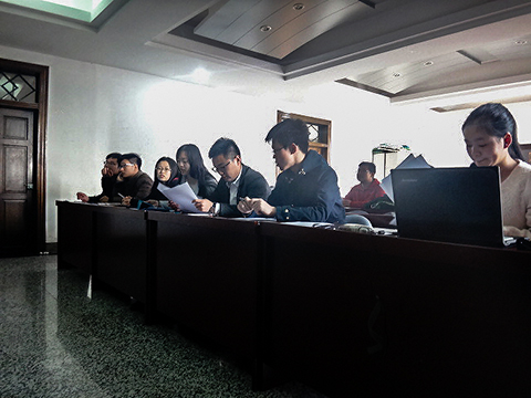 4月15日下午,物理与光电工程学院团委理论学习中心在物理系楼322举办了第十九期旗帜在线学院答辩。出席本次活动的嘉宾有物理与光电工程学院 14级辅导员梁勇,校“两组学习”部副部长李哲,学院团委常务副书记罗雨清,团委组织部部长孙景毓,团委实践部部长张旭,团委讲坛部部长吴梦添和团委理论学习中心主任朱绍英。