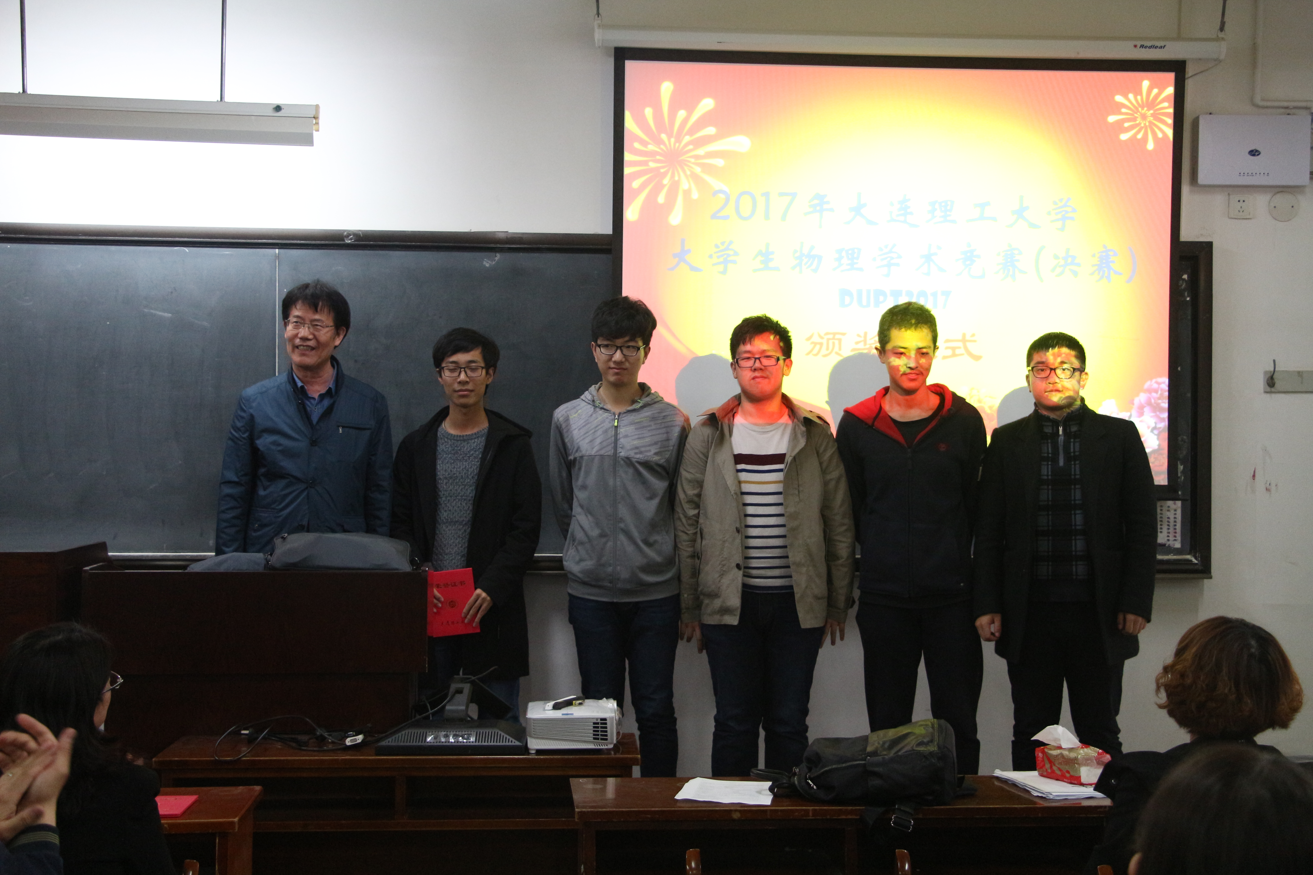 为提高大学生创新意识、创新能力、协作精神和实践能力,2017大连理工大学物理学术竞赛决赛于416日在综合一号教学楼211212教室举行,到场的评委有滕永杰、白洪亮等基础物理实验教学中心的老师。进入本次决赛的共有六只队伍,分别是:贤士无名、简并队、理力队、Fire Five、洛伦兹力、KO