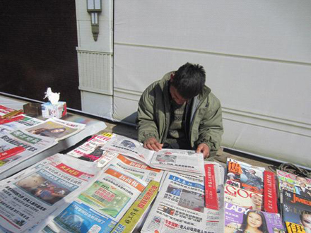 上图是卖报奶奶的报摊,她的儿子清楚得记得每种书报的价格,右上图的杂志便是好心人送来的。常年风吹日晒的卖报,使得卖报奶奶和他的儿子体质很弱,但奶奶仍旧保持着乐观的态度。奶奶收到书本后,不停地对我说要我仔细算清送来的书报多少钱,坚持要付给给我们钱,经过我们再三推辞,奶奶还是坚持付给我们一块钱的书钱。