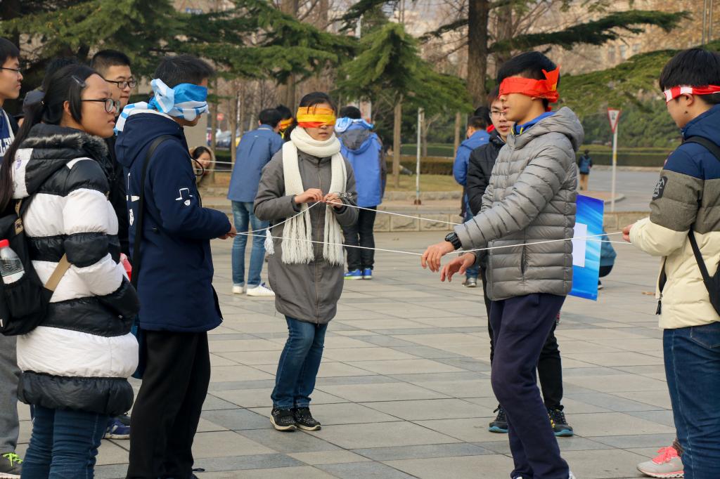 本期活动为团队素质拓展,首先,同学们进行两个集体热身活动,虽然两个热身游戏难度系数不大,却在短时间内使气氛活跃起来,也迅速增进同学们之间的了解。