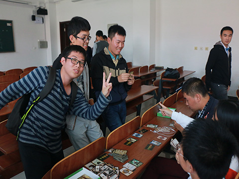 室内游戏分为五子棋、三国杀、闹钟炸弹、你画我猜和天黑请闭眼等五个项目,每一个游戏都深受大家欢迎,各寝室均有代表参加。到场同学熟悉了规则之后便开始了精彩的游戏和激烈的角逐。经过几轮的比拼,各项活动优胜者脱颖而出,为寝室争得了荣誉。
