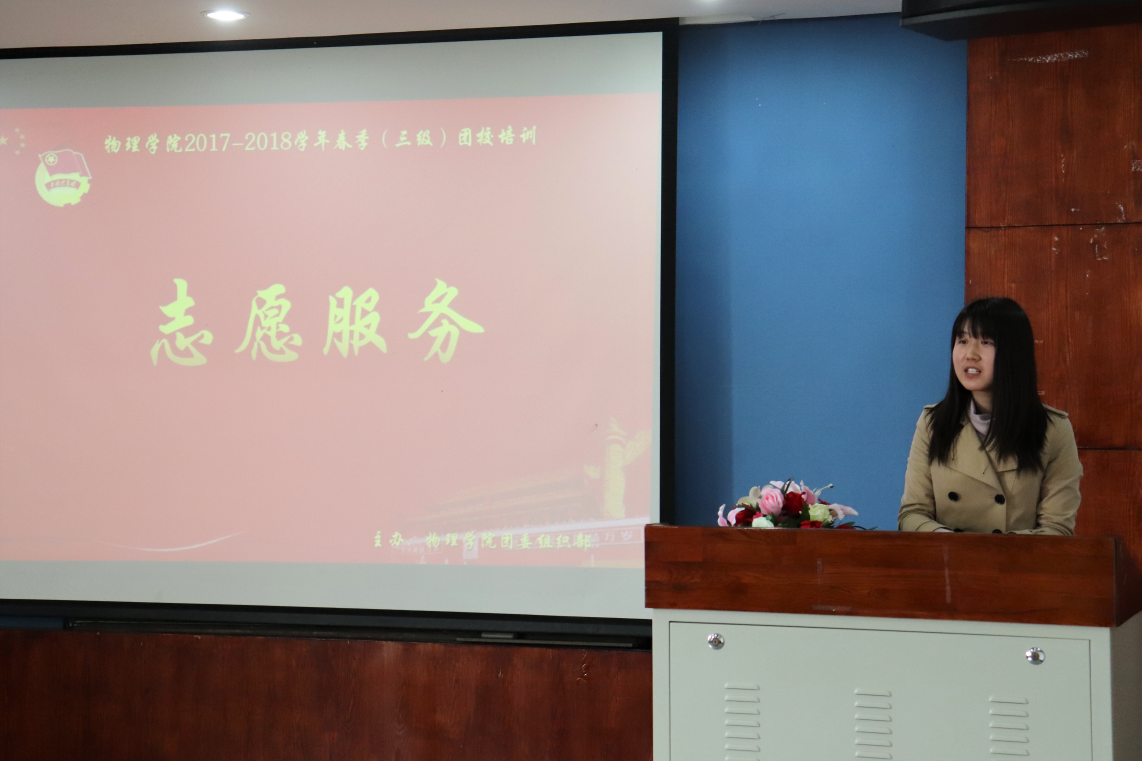 最后李睿意上台介绍有关志愿服务的一些注意事项,并给出自己大一时的一些经验。