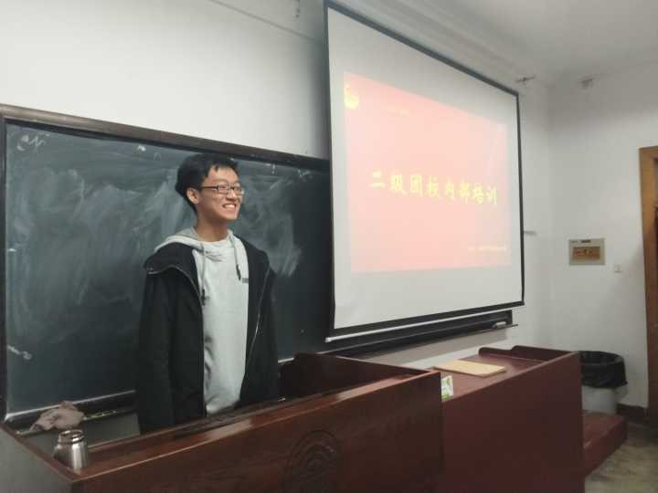 然后,由张铭洲上台向大家分享自己作为多次二级团校的参与者的经验。张铭洲介绍道:要认真记录二级团校时宣讲嘉宾的发言,以便之后书写心得和感受。当进行团校实践时,要积极参与,配合支部委分配的工作。