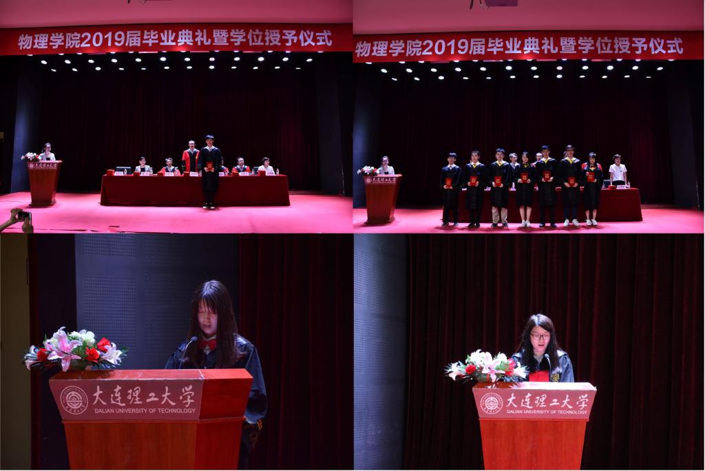 又是一年的毕业季,又一届物院学子即将离开校园,踏上崭新的人生旅途。6月20日下午2点,开云在线登陆入口-开云(中国)2019届毕业典礼暨学位授予仪式在综合教学二号楼B301百川报告厅成功举行。到场的嘉宾有开云在线登陆入口-开云(中国)院长、博士生导师赵纪军教授,学院党委书记、博士生导师王正汹教授,副院长、博士生导师陈茂笃教授,副院长、博士生导师于长水教授,副书记兼副院长、纪委书记杨木老师,副书记兼副院长于艳敏老师,学生办主任兼团委书记纪丹红老师,组织员兼2016级辅导员佟西原老师,研究生辅导员张弛老师,2018级辅导员杨帅兵老师,以及15级所有本科、硕士、博士毕业生和部分学生家长。