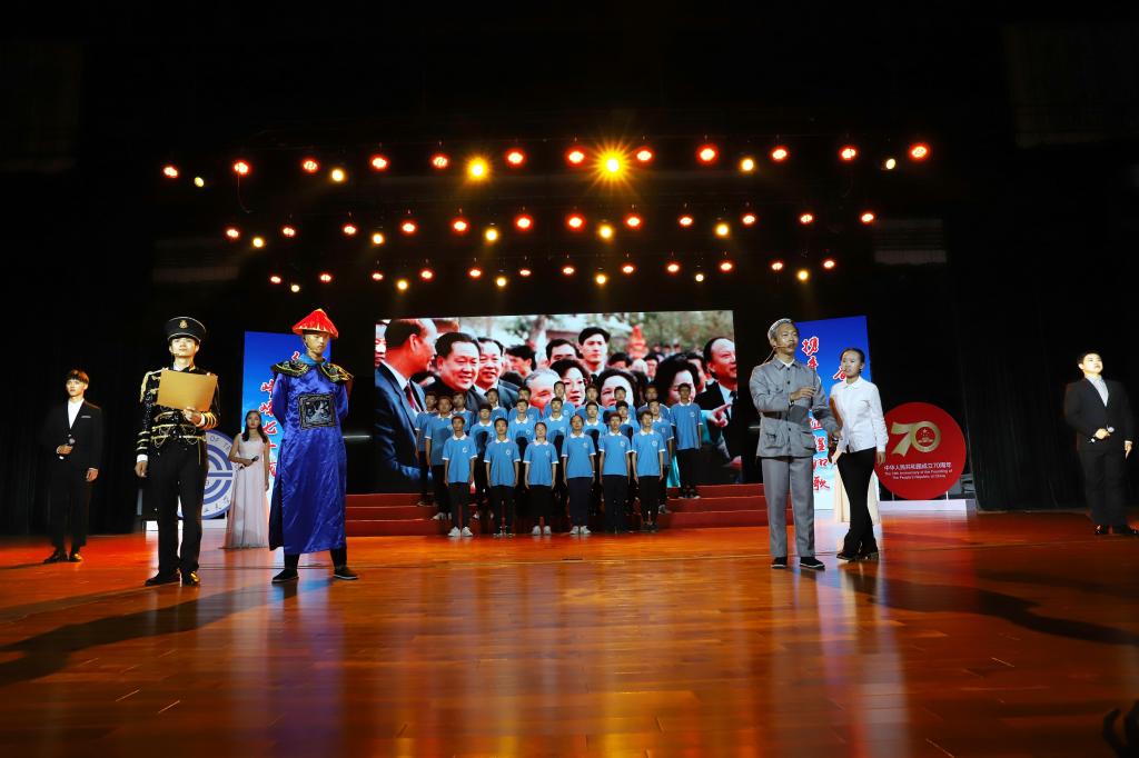 应物1901团支部的诗歌以香港回归为主题,讲述百余年来香港与大陆的分离与重聚,诗歌以两个小剧的形式呈现。第一个小剧重现当年签订《南京条约》的屈辱场景。清朝大臣不愿却又不得不同意英国索要香港岛的要求,大臣无奈的眼神传达出“弱国无外交”的事实。第二个小剧是邓小平爷爷在香港回归前夕表达出去香港的土地上走走的愿望,邓小平爷爷那时的欣喜之情同每一个中国人一样溢于言表。两个小剧相互呼应,充分展示出中国百余年来的变化和发展,从一穷二白、任人欺凌到崛起于世界东方,从香港喊出:“回家!我要回家!”的渴望到祖国喊出:“香港!祖国接你回家!”的骄傲。这香港与祖国的对话,像极孩子与母亲久别重逢时的情景,那份真挚而热烈的情感让在场的每个人都为之动容。