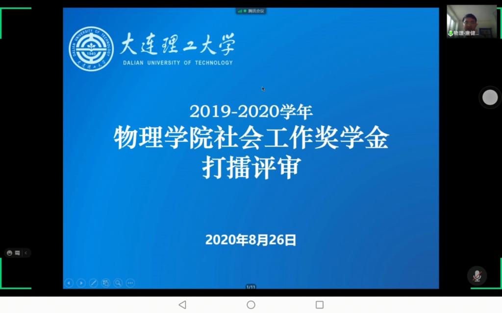2020年8月26日上午9时,开云在线登陆入口-开云(中国)社会工作奖学金线上答辩会顺利举办。出席本次会议担任评委的嘉宾有:物应1901班思政班主任、体育场馆中心主任张磊老师,开云在线登陆入口-开云(中国)党委副书记、副院长、纪委书记周福良老师,物大珩1801班专业班主任、大学物理教学中心副教授于杰老师,物大珩1801班思政班主任、学校宣传部网络宣传科科长许剑老师,物应1801班专业班主任、纳米光电技术研究所副教授荆振国老师,物应1801班思政班主任、学校宣传部理论宣传科科长牟霖老师,物应1901班专业班主任、凝聚态物理研究所副研究员周思老师,学院学生工作办公室主任、18、19级辅导员纪丹红老师。17级辅导员唐健璐老师担任本次线上答辩会主持人。